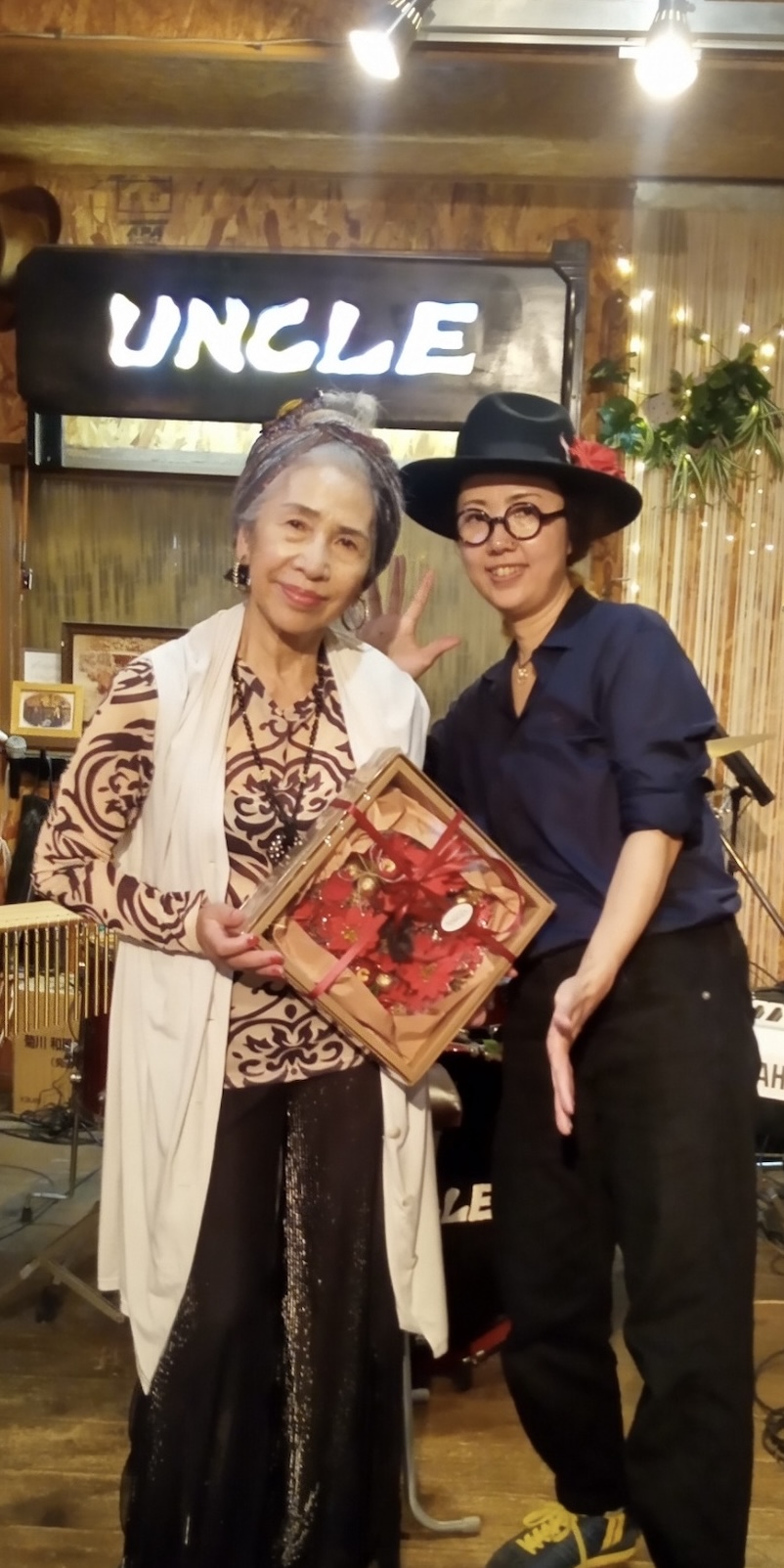 2024.10.17.thu. cafe&garage UNCLE 山中るい&みぞぐちさちこ cafe&garage UNCLE 山中るい&みぞぐちさちこ 秋めいた風が吹きだし、 朝晩涼しくなってきました。 この日は良いお天気に恵まれ、 暑いくらいでした。 ライブの時間が近づいてくると、 お客様がぞくぞくと集まって下さり。 気がつけば、キッチンは テキパキと動くマスターとるいさん。 さすがやな… と思いながら、 UNCLE入り口にある可愛いアンティークピアノでwelcome演奏を、気分良く弾いて。 あっという間に、スタートの時間。 まだ明るい午後の日差しが窓から入り込み、 いつものLIVEとは違う色を感じながら。 まずは、私のソロ。 「子供を授かった時に感じた、 一人一人がおくりもの。」という曲、 "おくりものの唄"からスタート。 アコーディオンに持ち替えて、夏の終わりから秋に飛んでくる生き物の曲。を演奏した後、 「皆さんで歌いませんか?」と無茶ぶりにも関わらず、歌ってくださった「もみじ」。 最後はるいさんも参加してくださって。 本編スタート。 初めてのるいさんとのDUOライブ。 DUOの良さは、手に取るようにお互いの息づかいを感じ、リズムを感じ演奏すること。 まるで、一緒に走りながら 話しているような感覚。 この日は、 何度もお客様の歌声が重なりました。 自然と響きだした、歌声。 UNCLEの高い天井の空間に響き渡る 優しい歌声。 心に染み渡りました。 リズムのある曲では、 お客様の手拍子に助けていただき。。。 みんなが知っているであろう童謡唱歌、歌謡曲、スタンダード・ナンバー。そして、オリジナル曲、jazzやボサノバ、ソウル。 幅広いラインナップでお届けできる幸せを、また実感した一日となりました。 この日は、るいさんのお誕生日。 なんて嬉しいんだろうと思いました。 薔薇という言葉の入った歌謡曲、唱歌を3曲メドレーにしてお届けしました。 この時も会場一丸となって、るいさんのお誕生日をお祝いでき、サイコーでした。 お越しくださった皆様、 無茶ぶりから始まりましたが、 どんどん参加してくださって、本当にありがとうございました‼️ まだ訪れたことのない方、 UNCLEのLIVE、楽しいですよ! 次回UNCLE Liveは、 11月9日土曜日の "山中るいwith Friends"です!! お待ちしています♪ #accordion#piano#vocal#keyboad #UNCLE#山中るい#みぞぐちさちこ #garage#4wd#修理 #猪名川町#アフタヌーンライブ#カフェ #生演奏#ありがとうございました |